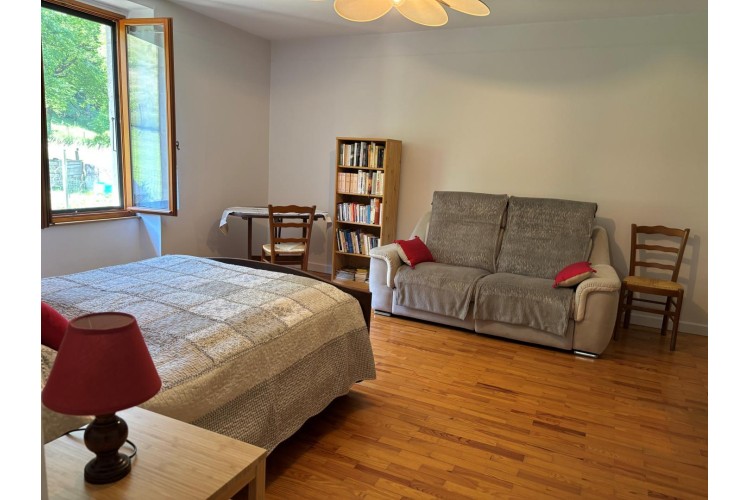 Situé dans une reculée, site Natura 2000. Proximité du vignoble de Chateau-Chalon. Logement au rez de chaussée d'une maison où se trouve un autre gîte. Cuisine-séjour, chambre avec 1 lit 2 places - chambre 1 lit 2 places et 1 lit 1 place, salle d'eau, terrain attenant clos, cour-terrasse, salon de jardin, barbecue. Chauffage central. Toutes charges comprises. Espace détente et jeux. Abri pour voiture. Départ de sentiers de randonnées. Les draps et linge de toilette ne sont pas fournis.