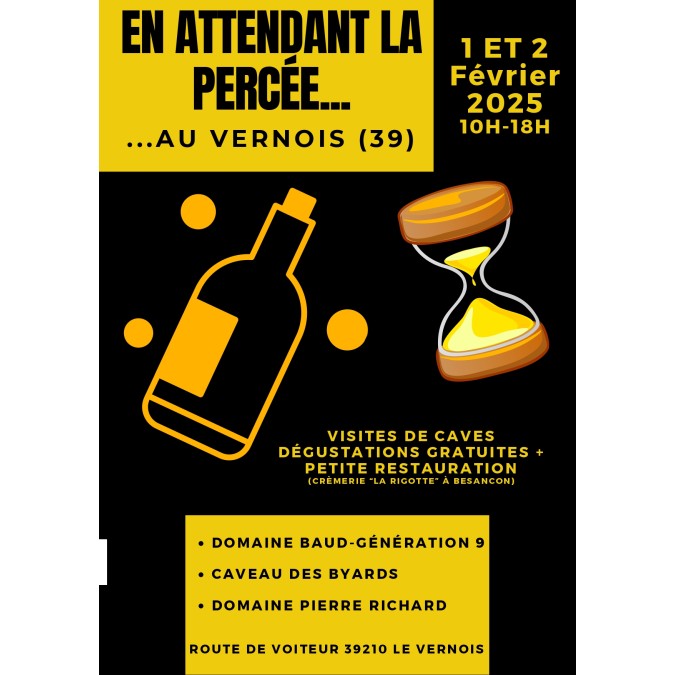 En attendant la prochaine Percée du Vin Jaune, les 1er et 2 février 2025, les domaines Baud, Pierre Richard et le caveau des Byards vous ouvrent leurs portes ! Découvrez leurs caves, dégustez les vins du Jura et profitez de tarifs préférentiels sur le Vin Jaune, le Château-Chalon et bien d’autres cuvées. Pour vous restaurez, la crèmerie/fromagerie La Rigotte sera parmi nous, et ils vous proposeront leur délicieuse Morbiflette !
