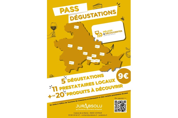 Le Pass Délices et Découvertes vous invite à explorer les saveurs du terroir avec 5 dégustations à choisir parmi 11 producteurs et artisans de la Bresse Haute Seille. Une expérience gourmande et authentique, à vivre à votre rythme, au fil de rencontres passionnées. Au programme, une grande diversité de spécialités locales : miels et douceurs artisanales au GAEC Le Miel du Jura (miels, pain d’épices, nougat, hydromel), charcuteries et fromages régionaux au Panier de Passenans (Comté, Morbier, saucissons…), ou encore boissons artisanales et biscuits chez Les Pupitres de Céline (jus de pomme, sirops, biscuit). Les amateurs de vin pourront profiter de dégustations dans plusieurs domaines emblématiques : à la Fruitière vinicole de Voiteur, au Domaine Baud Génération 9 ou encore au Caveau des Byards (vins du Jura, crémant, dégustations commentées), sans oublier la visite du Domaine de Sainte Marie avec dégustation de plusieurs cuvées. Côté produits du terroir, la Fruitière des Côteaux de Seille propose une découverte des fromages jurassiens (Comté fruité et affiné, Morbier), tandis que Au Bon Baveux vous accueille pour une dégustation d’escargots accompagnés de vin blanc. Pour une pause sucrée ou gourmande, direction Le Comptoir de Violette (glace artisanale et sirop de sapin) ou La Tuile Gourmande (spécialités salées et pâtisseries maison aux accents régionaux). Entre vins, fromages, douceurs sucrées et spécialités locales, ce pass est une invitation à découvrir toute la richesse gastronomique du territoire, tout en rencontrant celles et ceux qui le font vivre.