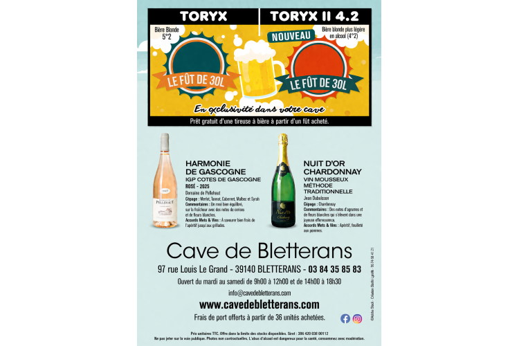 La Cave de Bletterans, est une petite cave de quartier, qui met en valeur de nombreuses références de vins de Bourgogne, du Jura et d'ailleurs. Elle dispose aussi d'une gamme d'effervescents, de spiritueux en tout genre, et de bières locales, qui rendent cette cave fonctionnelle et authentique. N’hésitez pas à venir à la rencontre de son caviste, qui sera la pour vous partager sa passion, son savoir, et vous faire découvrir de belles choses. Il y a toujours une bonne raison de venir à la Cave !