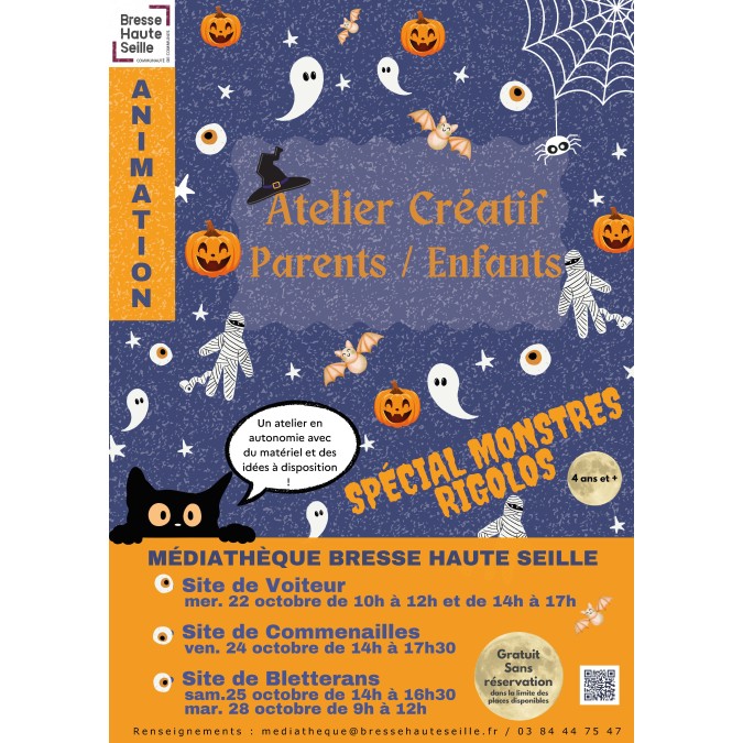 Un atelier créatif parent-enfant autour d'Halloween pour créer ensemble des monstres à mourir de rire. À votre disposition du matériel et des idées.