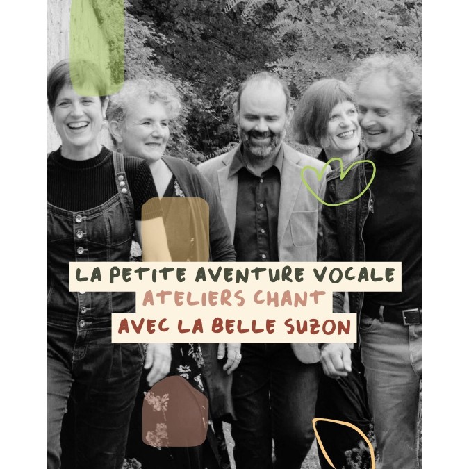 Cet automne, c’est ce que La Belle Suzon te propose : si tu en as envie, viens faire trois ateliers et un moment de concert avec nous. On a concocté juste ce qu’il faut pour chanter ensemble, peut-être même à plusieurs voix, faire sonner nos corps en percussions corporelles, être accompagnés du tambour, et terminer sur scène au milieu du Vocal Trad 5tet La Belle Suzon.