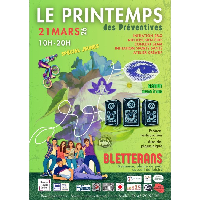 Bletterans accueille « Le Printemps des Préventives », une journée gratuite d’animations, de rencontres et de découvertes autour du sport, du bien-être et de la prévention.