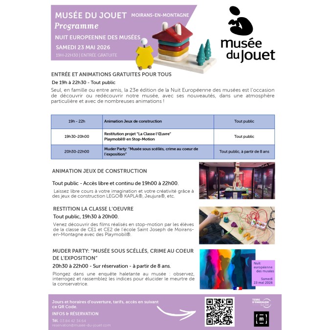 Nuit Européenne des Musées le samedi 23 mai de 19h à 22h30 au Musée du Jouet de Moirans-en-Montagne.