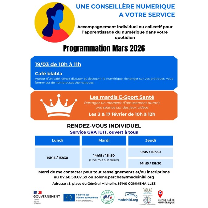 Programmation ateliers Conseiller Numérique mars 2026