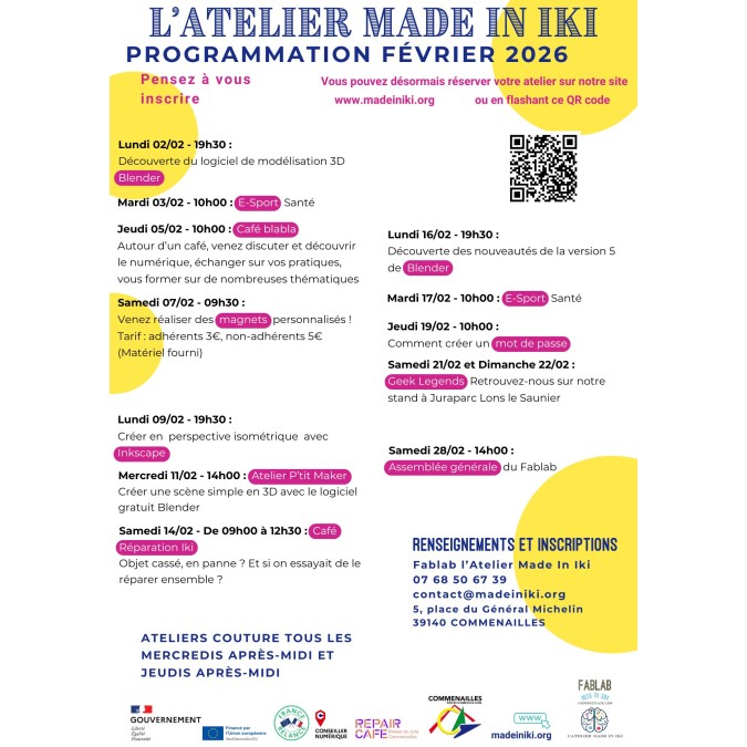 Programmation ateliers Fablab février 2026