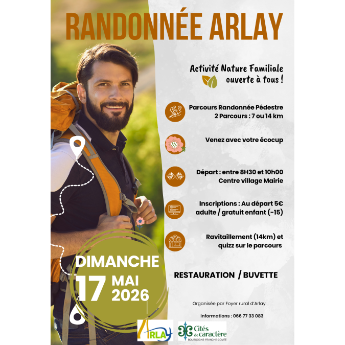 Départ entre 8h30 et 10h sur la place de la mairie à Arlay