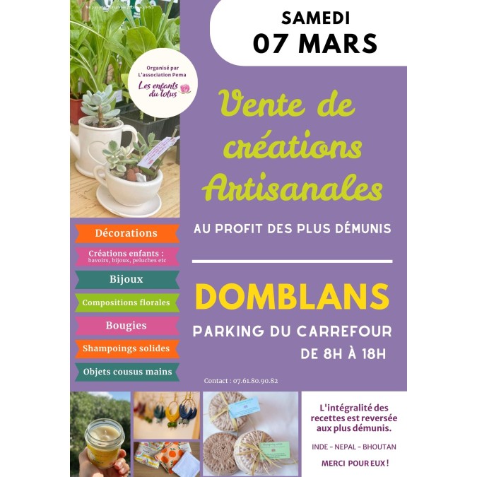 Vente de décorations, créations enfants (bavoirs, bijoux, peluches, etc.), bijoux, compositions florales, bougies, shampoings solides, objets cousus mains.