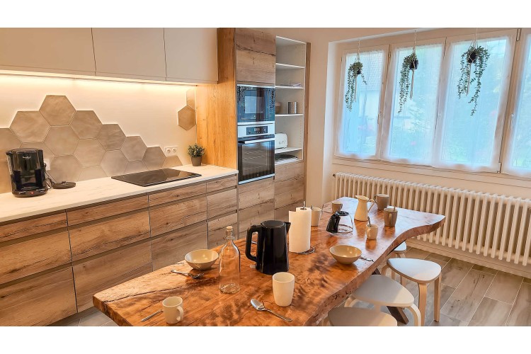 Séjournez en Famille ou entre Amis, le temps d'un week-end ou pour les vacances dans une maison agréable située au cœur du Jura, dans le petit village de Plasne perché à 600m d'Altitude et à 5km de Poligny. Cette maison vous offre 180m2 de confort et de détente afin de profiter petits et grands. Vous trouverez : au rez-de-chaussée : une entrée, une buanderie, une spacieuse cuisine équipée, un salon-télé, une salle à manger, un espace jeux d'arcade et baby-foot, une salle de douche et toilette séparé ; Et à l'étage : 4 chambres (deux avec lit de 160x200cm; une avec deux lits simples 90x200cm et une avec deux lits superposés pour les enfants); une salle de bain et douche, un wc séparé. Vous profiterez également d'une belle terrasse aménagée donnant sur le jardin privatif de 1000m2. Barbecue, transat, parasol et table de ping-pong à disposition. Nombreux chemins de randonnées, cascades, fromagerie à proximité. Région des Lacs: Clairvaux, Chalain, Vouglans. Ville à Proximité: Poligny, Arbois, Salins-les bains, Lons-le-Saunier, Voiteur, Château-chalon, Champagnole Pistes de skis à : à moins d'une heure. Borne de recharge électrique sur place.